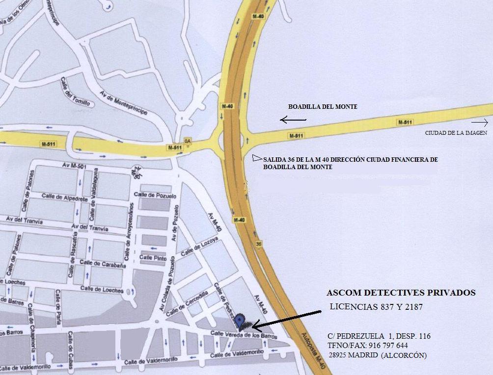 Ascom Detectives Privados c/ Pedrezuela 1, despacho 116 28925 Madrid |